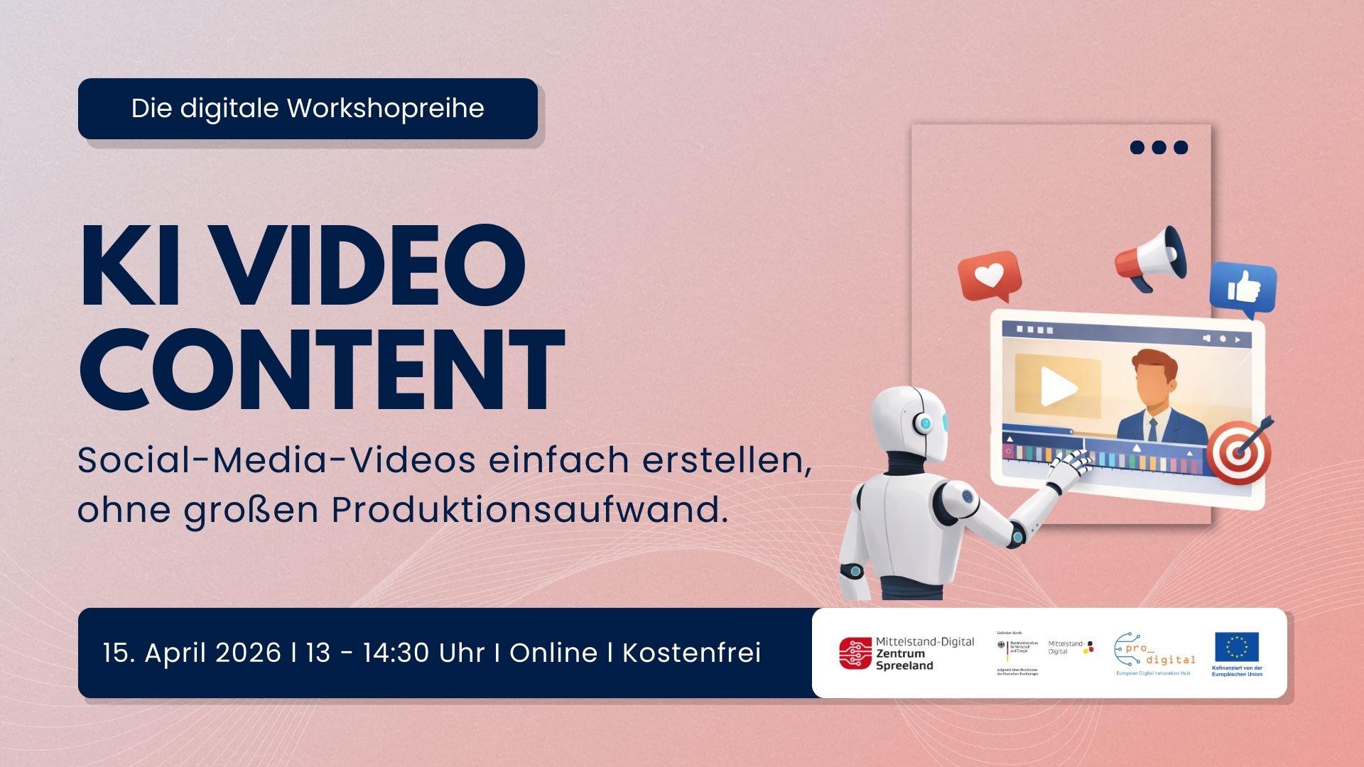 Die digitale Workshopreihe wird gemeinsam vom EDIH pro_digital und dem Mittelstand-Digital Zentrum Spreeland organisiert.